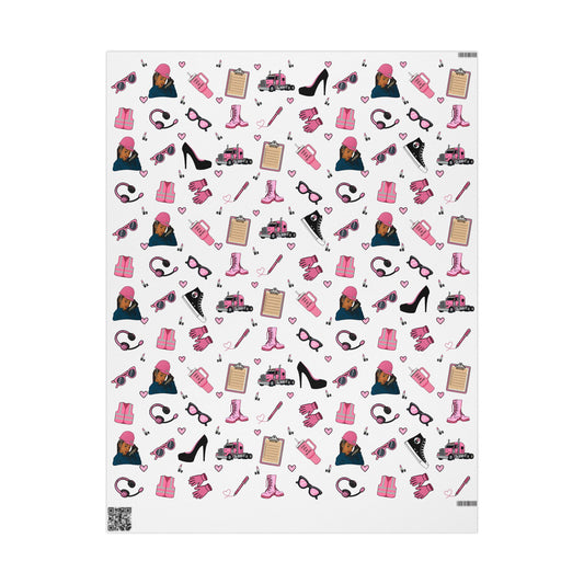 Pink Trucker Charm Gift Wrapping Paper Trucker Theme to celebrate the female trucker in your life