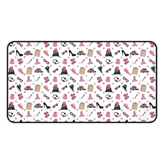 White Trucker Charm Mouse Pad, Feminine Trucker Theme Trucker Girl Office Accessories, Mouse Pad for female Truck Driver