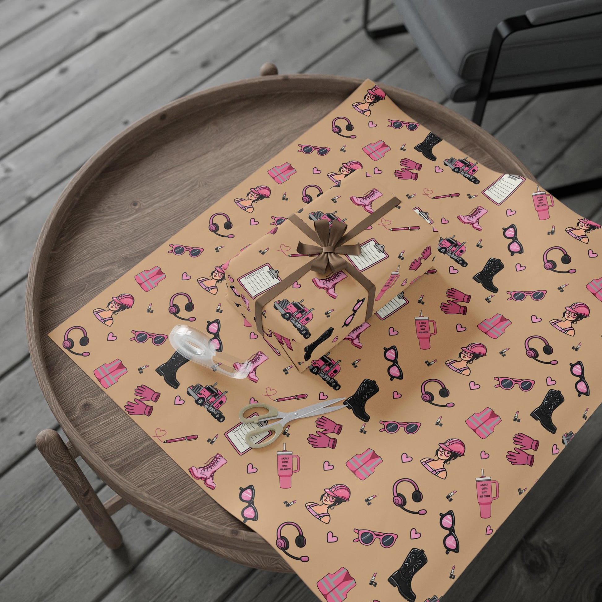 Wrap your gifts with style and personality! This unique wrapping paper features a fun, feminine trucking theme designed especially for women in trucking. With bold, cartoon-style illustrations of pink semi-trucks, safety vests, hard hats, sunglasses, boots, gloves, clipboards, water tumbler, lipstick, and little hearts, this design is both playful and empowering. ✨ Details: Design: Pink Diesel Diva Trucking Theme Finish: Smooth, high-quality print Size Options: [30"in X 3'ft, 30"in X 6'ft , 30"in X 15'ft ] Material: Premium wrapping paper Style: Female Trucker Theme 💡 Makes the perfect gift wrap for the female trucker in your life! Care instructions - Use a soft, clean, and dry cloth to gently brush any dust or dirt off from the center of the product outwards